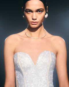 HANDMADE EMBROIDERED GLITTER CORSET DRESS WITH CRYSTAL DROPS AND CHAINS