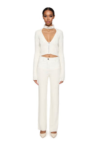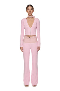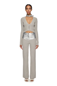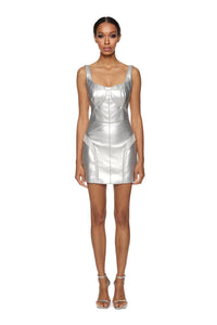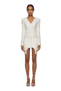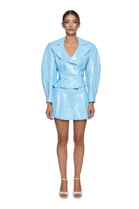 Vegan leather crop jacket and mini skirt with crystal bra design