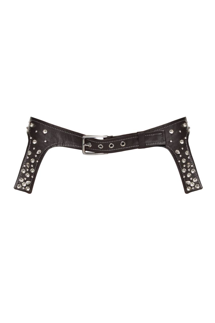 Vegan leather jumpsuit with embroidered belt