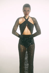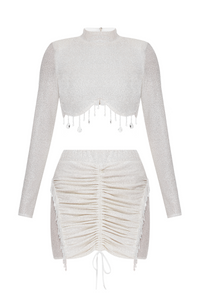 • SET GLITTER TOP WITH CRYSTAL DROPS KIRT WITH CRYSTAL CHAINS DECOR