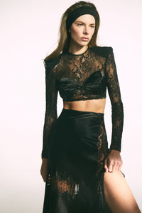 • Set OF LACE TOP WITH SATIN EMBROIDERED BRA AND SATIN MIDI SKIRT WITH LACE DECOR