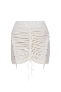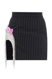 Міні-спідниця з кришталевою бахромою та брошкою-бантом