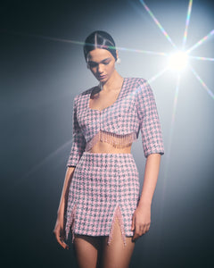КОМПЛЕКТ ІЗ ТВІДОВОГО ПІДЖАКА І СПІДНИЦІ З КРИСТАЛЕВИМ ДЕКОРОМ