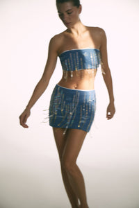 • ДЖИНСОВИЙ ТОП HADMADE З ДЕКОРОМ КРИСТАЛЕВИМИ ЛАНЦЮЖКАМИ